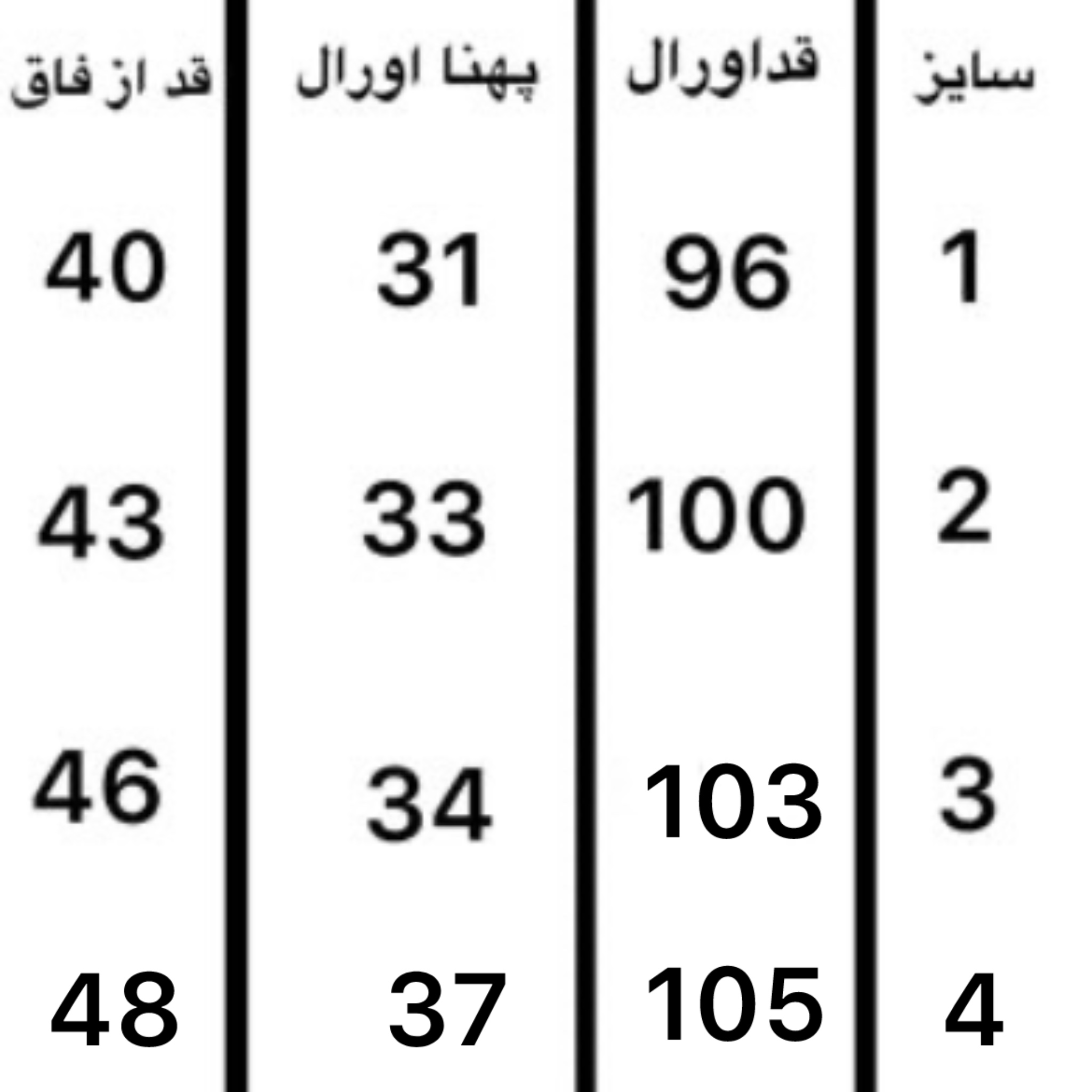 این مدل از سایز 1 تا 4 دارد و مناسب 6 تا 10سال تقریبی میباشد.